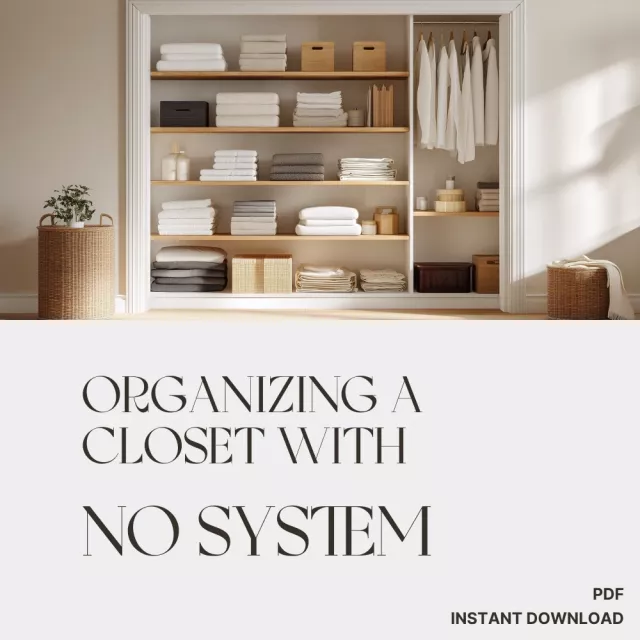 Stop struggling with a messy, frustrating closet. Download The Ultimate Guide to Organizing a Closet with No System now and start your journey toward a clutter-free, beautifully organized wardrobe today!